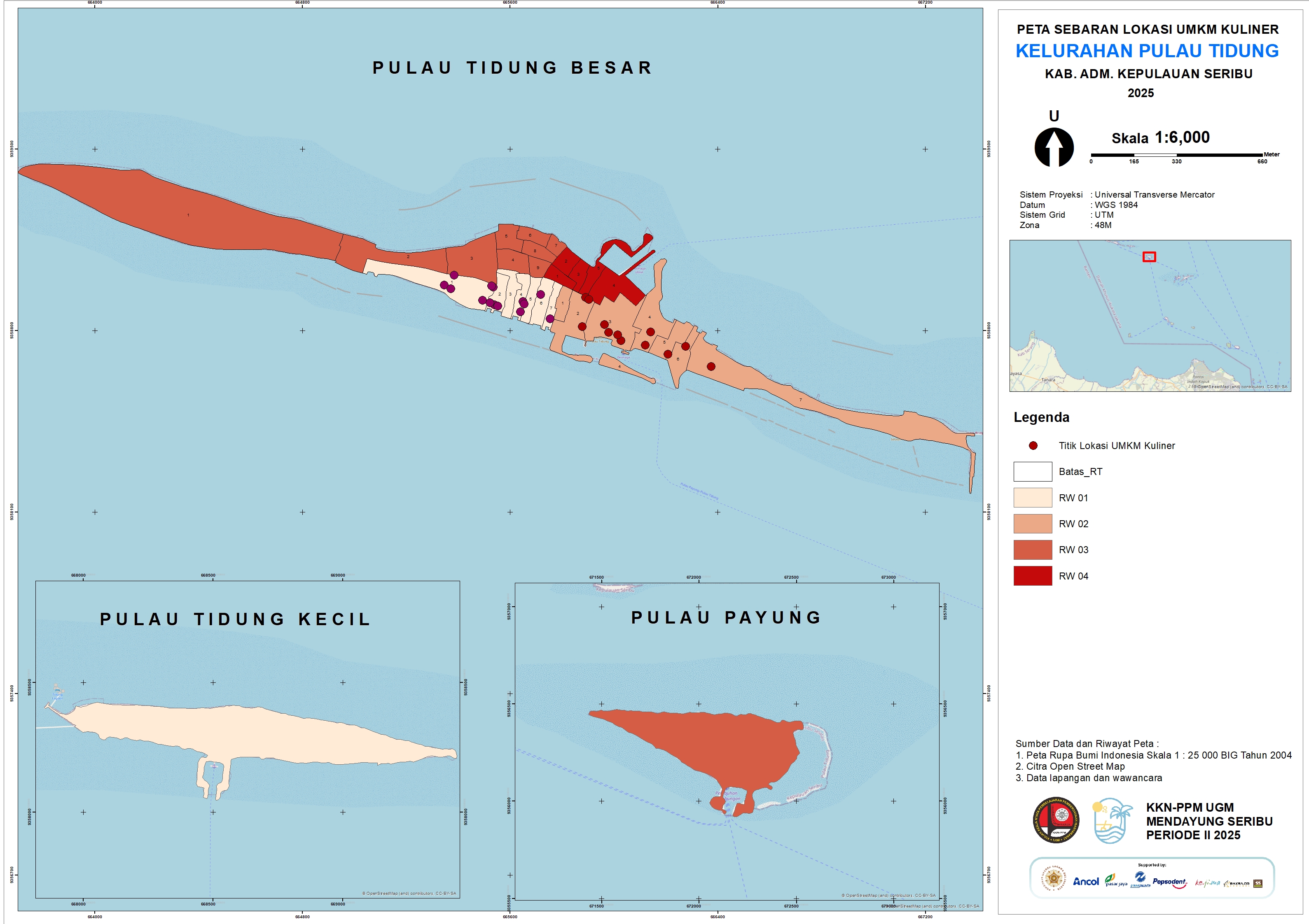 Peta administratif dan sebaran UMKM kuliner serta penginapan di Pulau Tidung.